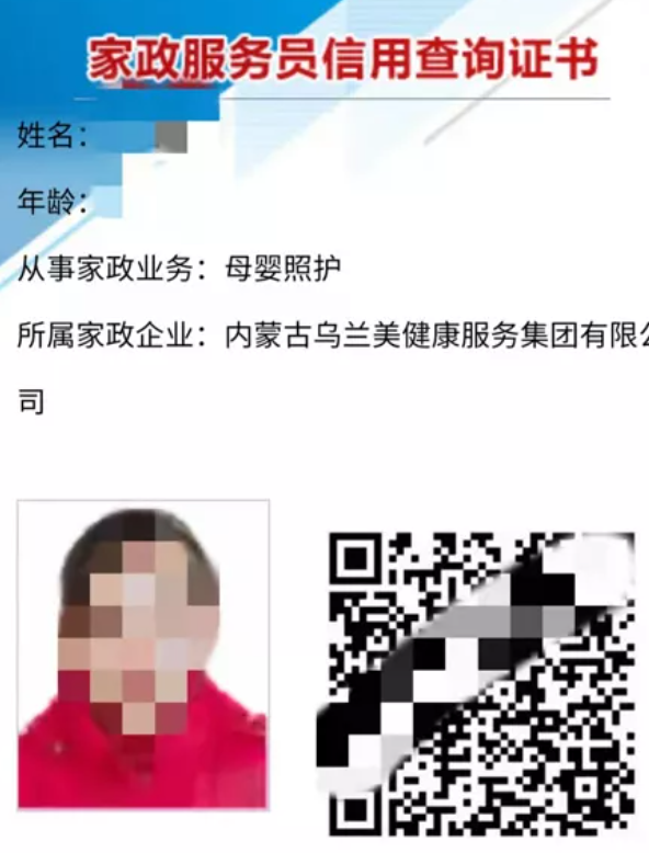那就是非常重要的家政服務員信用查詢證書!